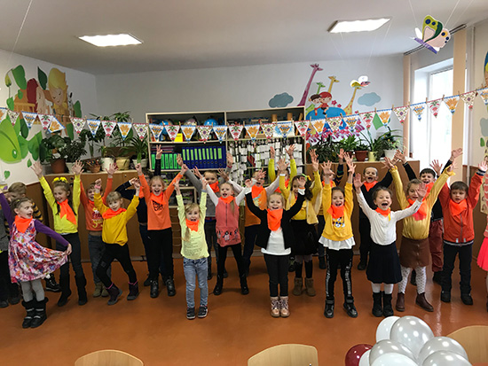 2 грудня учні початкових класів розфарбували все у жовто-помаранчевий - колір сонечка, тепла і гарного настрою. Діти та вчителі мали жовто - помаранчеве вбрання, чи аксесуар. Усі були дуже яскраві та наповнені позитивом, наче Сонечка, які один одному дарували позитив і чудовий настрій. Вчителі для учнів підготували сюрприз і влаштували танцювальну перерву. Діти були у захваті!