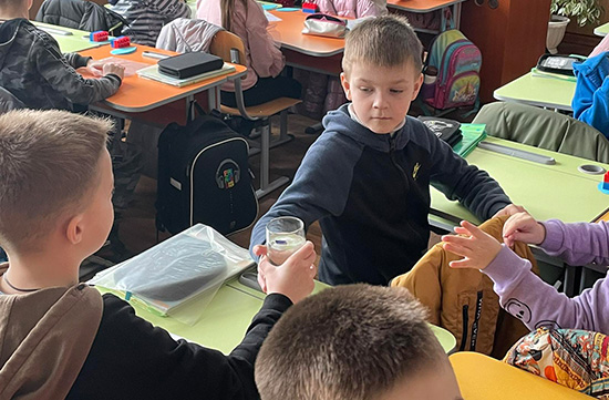 Учителі молодшої ланки не перестають дивувати дітей своєю креативністю та сучасністю. Нещодавно класний керівник 2-Е класу провів урок-дослідження для своїх учнів та колег "Чарівні перетворення води на кухні". Тема актуальна та важлива для учнів другого класу. Діти разом з вчителем проводили цікаві досліди: чи тоне лід у воді, при якій температурі закипає вода, яка ж вода замерзає швидше - тепла чи гаряча, чи випаровується вода взимку, скільки води людина випиває за день. Учні переглянули презентацію, навчилися правильно заварювати чай та ознайомилися з кухонними приладами-чарівниками, які оточують нас на кухні. Урок-дослідження завершили бліц-опитуванням, яке провели серед учнів та вчителів, присутніх на заході.